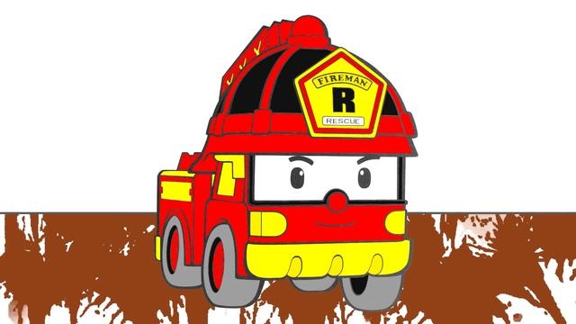 Раскраска из мультфильма - Робокар Поли: пожарная машина, экскаватор