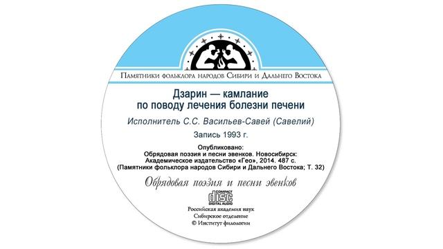 Исполнитель С.С. Васильев-Савей (Савелий). Запись 1993 г. Опубликовано: Обрядовая поэзия и песни эвенков. Новосибирск: Академическое издательство «Гео», 2014. 487 с. (Памятники фольклора народов Сибири и Дальнего Востока; Т. 32).