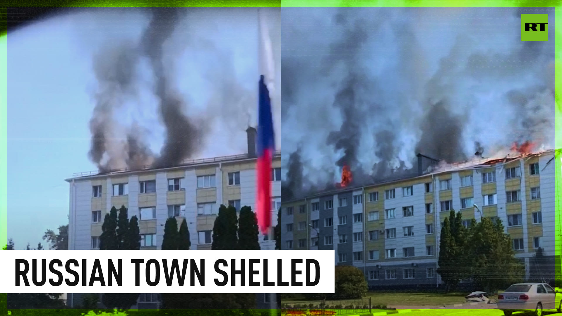 The Russian town of Shebekino, which lies on the border with Ukraine, has been hit by an artillery strike, according to the regional governor. The Ukrainian military fired Grad missiles, hitting an administration building, as well as a dormitory and a passing bus, according to the governor. Eight people have been reported injured. Video of the aftermath shows the roof of the dormitory still ablaze as ambulance crews attend the scene. The town also appears to be without power following the attack, the governor added. ------------------------------------------------------------------------------------- Freedom over censorship, truth over narrative. Follow us on Facebook: https://www.facebook.com/RTnews Follow us on Telegram: https://t.me/rtnews Follow us on Twitter: https://twitter.com/RT_com
