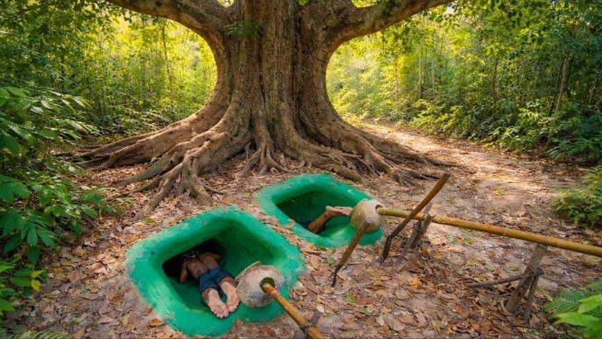 Строительство подземного бассейна с водными горками, примитивными методами.
