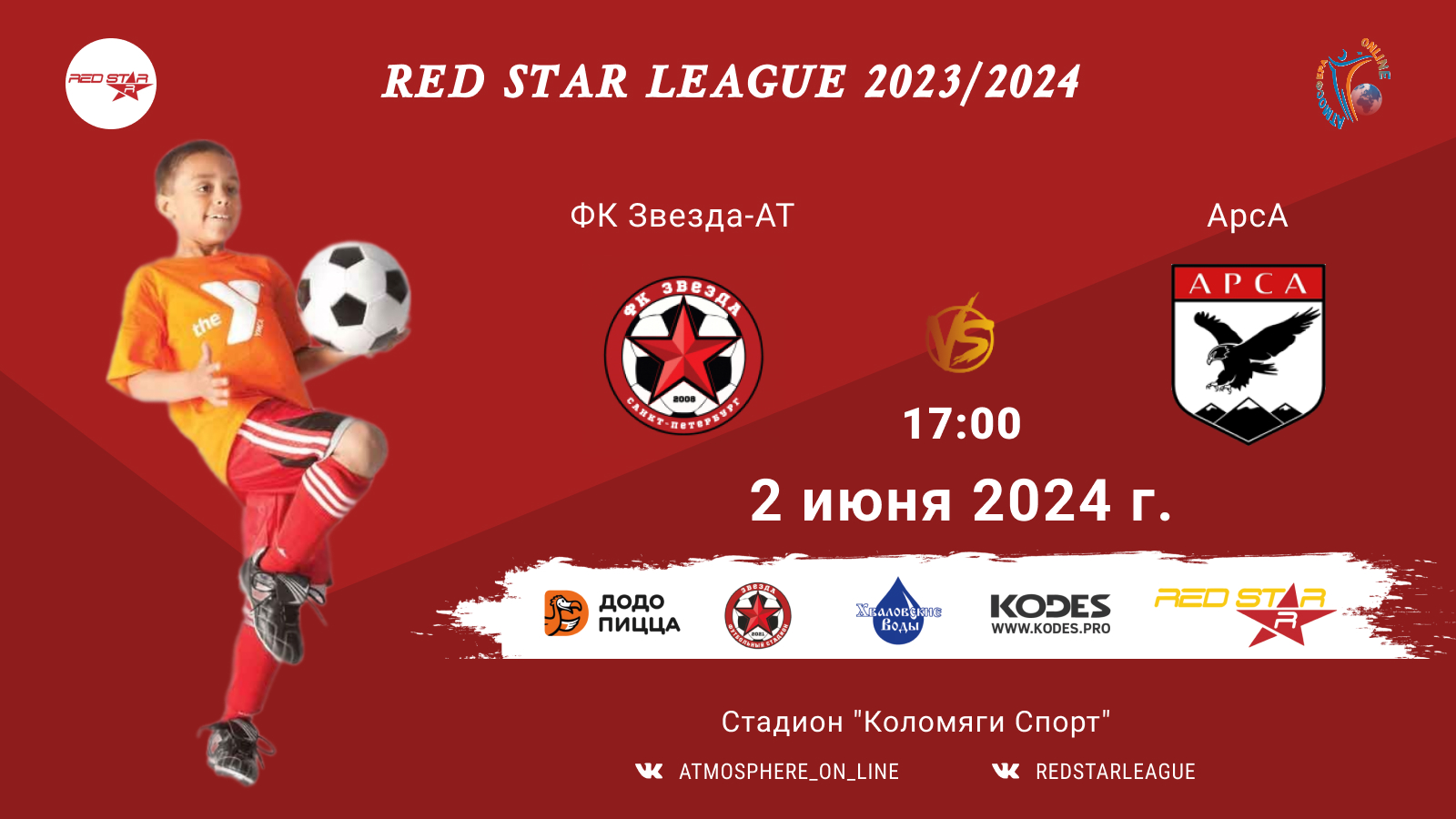 Red Star League среди команд 2013 г.р. (U11) 2 ИЮНЯ АПРЕЛЯ 2024 САНКТ-ПЕТЕРБУРГ, Стадион "Коломяги-Спорт" ФК "Звезда-АТ" - ФК "АрсА" (Мурманск)/Red Star League, 02-06-2024 17:00