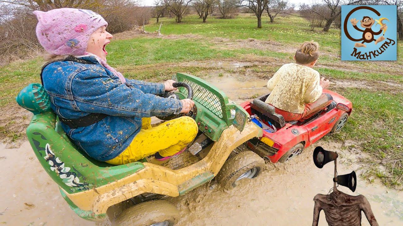 Прятки от Сиреноголового в пруду. Диана и Даня на детских машинах. Манкиту Истории