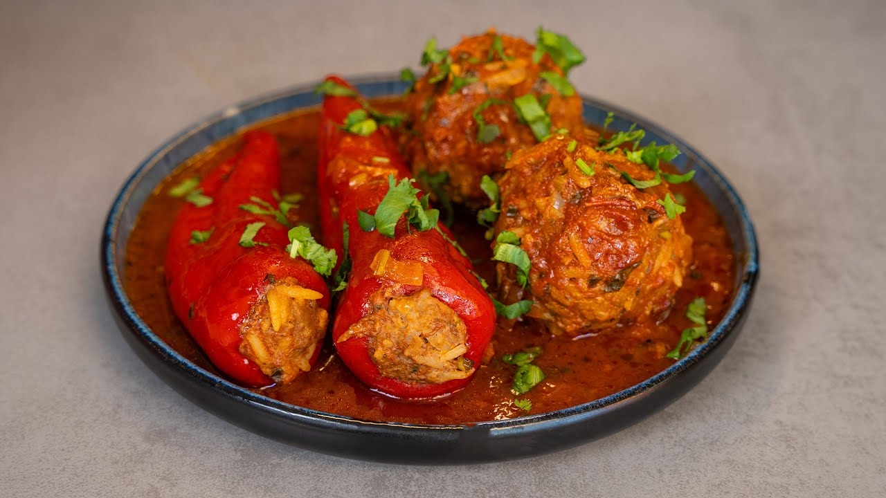 Фаршированные перцы с фрикадельками в соусе. 🌶🌶🌶 📕Книги можно купить на Озоне - https://ozon.ru/t/GNgDFee 🌶🌶🌶 Ингредиенты: ➊ Свинина - 500 г ➋ Говядина - 500 г ➌ Рис (сухой) - 150 г ➍ Перец - 8 шт. ➎ Лук - 150 г ➏ Кинза - 20 г ➐ Петрушка - 20 г ➑ Базилик сушеный - 0.5 ч.л. ➒ Розмарин сушеный - 1 ч.л. ❿ Черный перец - 0.5 ч.л. ➊➊ Острый перец - по вкусу ➊➋ Соль - 1 ч.л. Для соуса: ➊ Перемолотые помидоры - 700 г ➋ Лук - 250 г ➌ Бульон овощной - 500 мл ➍ Кинза - 15 г ➎ Петрушка - 15 г ➏ Базилик - 15 г ➐ Чеснок - 2 зуб. ➑ Аджика - 1 ст.л. ➒ Сахар - 1.5 ч.л. ❿ Соль - 1.5 ч.л. 🌶🌶🌶 00:00 - начало 00:12 - реклама нашей книги 01:42 - про размер перцев 02:09 - готовим фарш 03:20 - добавляем рис и специи 04:09 - очищаем и начиняем перцы 05:02 - готовим соус 07:33 - объединяем ингредиенты 09:00 - дегусташвили #кухнясакцентом #грузинскаякухня #фаршированныйперец #рецептфаршированногоперца