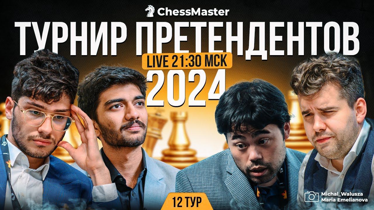 Спонсор трансляции – Школа шахмат ChessMaster https://bit.ly/ChessMaster-tp24 Получи 1 разряд и стань участником шахматной лотереи https://bit.ly/ChessMaster-winners Донат https://www.donationalerts.com/r/chessmaster Комментируем вместе с легендой наших трансляций гроссмейстером Фаррухом Амонатовым, а также с 7-и кратным чемпионом Беларуси, гроссмейстером Владиславом Ковалёвым! Мастер FIDE Максим Омариев всегда с вами на связи. Победитель турнира претендентов получает право на матч с действующим чемпионом мира Дин Лиженем. Дата проведения 3.04.2024 - 23.04.2024 8 участников, 2 круга Призовой фонд – 500 тысяч евро. Состав: Фабиано Каруана (США, 2803), Хикару Накамура (США, 2789), Алиреза Фирузджа (Франция, 2760), Ян Непомнящий (Россия, 2758), Рамешбабу Прагнанандха (Индия, 2747), Доммараджу Гукеш (Индия, 2743), Сантош Видит (Индия, 2727), Ниджат Абасов (Азербайджан, 2632). Контроль времени: 120 минут на 40 ходов, затем 60 минут на 20 ходов и 15 минут до конца партии с добавлением 30 секунд, начиная с 61-го хода. Игровые дни: 4-7, 9-11, 13-15, 17-18, 20-21 апреля, 22 апреля — тай-брейк. Выходные: 3, 8, 12, 16, 19 апреля. В 20:30 мск игра со зрителями. Начало турнира в 21:30 мск. Новости мира шахмат - https://t.me/ChessMaestro Наши проекты - https://taplink.cc/chessmaster ♕ - http://chessmaestro.ru/21mistakeyoutube книга 21 критическая ошибка в шахматах - получите Бесплатно #ChessMaster #шахматы