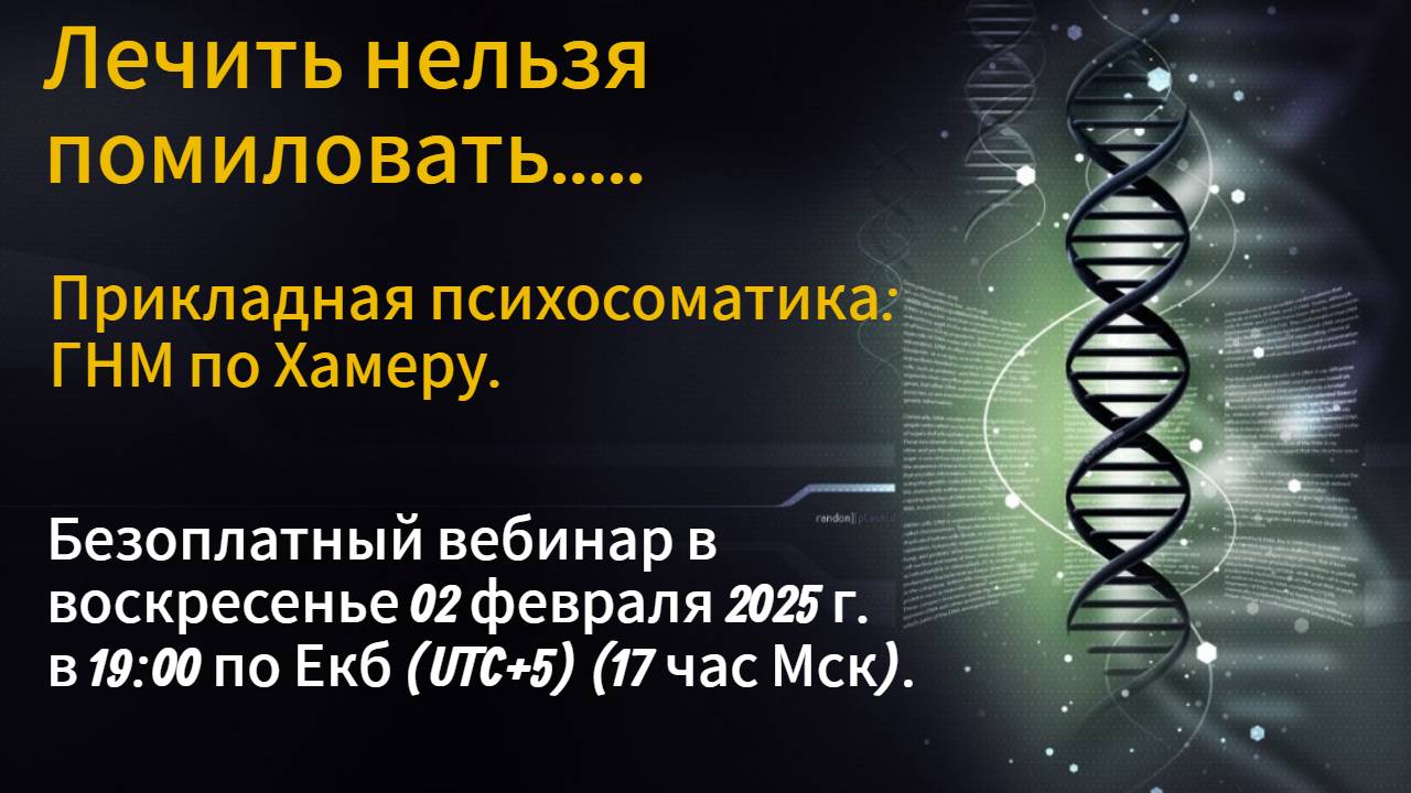 _Здравствуйте! В воскресенье, 2 февраля состоится безоплатный вебинар в 19:00 по Екб (UTC+5) (17 час Мск). «Лечить нельзя помиловать..... Прикладная психосоматика: ГНМ по Хамеру.» ✅ Присоединиться по ссылке: https://vk.com/call/join/AKghMpGZI82UQULOyeQzZxnETD_BxWnE_mKp2H9-tIc ✅ Ссылка на онлайн-трансляцию: https://vk.com/video31921484_456241685 В какой-то момент вебинара вы поймёте точно, 1. Что психосоматика - не наказание, а имеет конкретные биологические задачи. 2. почему руки- ноги холодные- анемичные и что сделать , чтобы стали тёплыми; 3. Как перестать страдать про болезнь. 4. Почему бывает плохой сон; 5. Откуда навязчивое осознавание болезни, проблемы ; 6. Сколько должно длиться выздоровление после болезни и что делать в это время; 7. Температура- боль -отёки, это всё же плохо, или, таки, хорошо ?! 8. Надо ли бороться с воспалением ? 9. Нет аппетита -это беда? Что делать? 10. Слабость и нет сил... Как их восстановить быстро и с пользой? 11. Гипертонические кризы и плохие сны - что общего. 12. ПИсать ночью - это вытекают отёки... Точно? Поймёте на вебинаре по прикладной психосоматике - ГНМ. ///Это не пишем пока. Регистрируйтесь сейчас, пока помните !/// ✅ Присоединиться по ссылке: https://vk.com/call/join/AKghMpGZI82UQULOyeQzZxnETD_BxWnE_mKp2H9-tIc ✅ Ссылка на онлайн-трансляцию: https://vk.com/video31921484_456241685 До встречи!__
