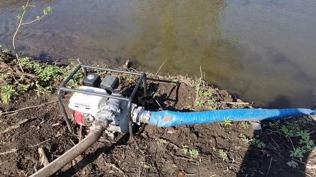 Высадил рассаду петрушки, поливаю участок мотопомпой