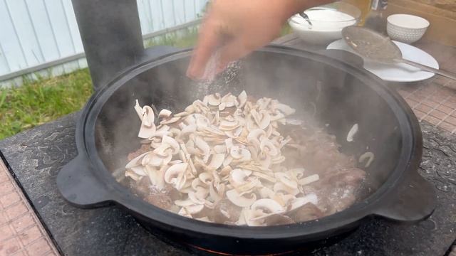 Нежная Куриная печень в Сливочно-Грибном соусе в казане