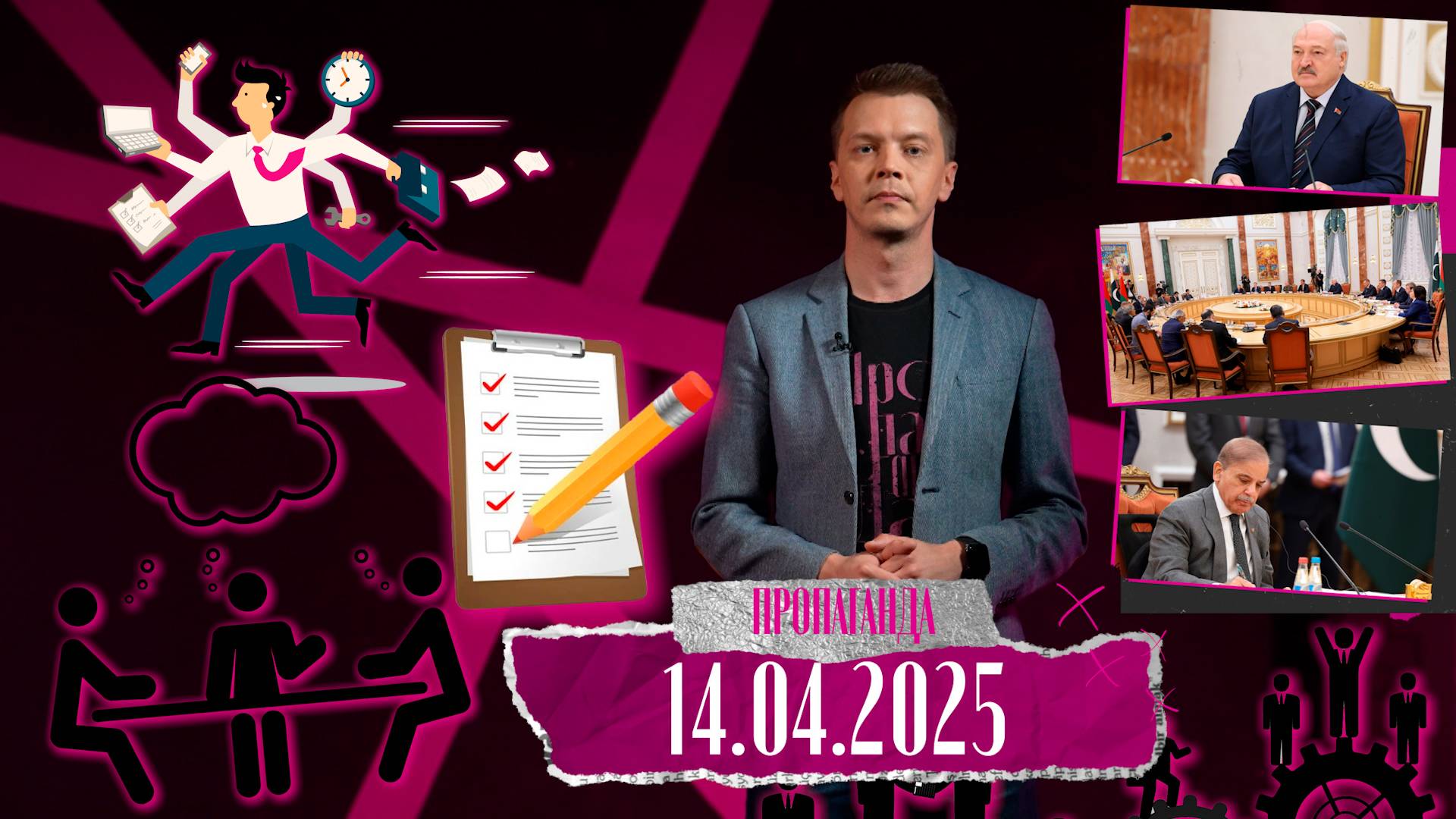В новом выпуске авторского проекта политического обозревателя ОНТ Игоря Тура "Пропаганда": (14.04.2025): - новая директива Президента: какой должна быть идеология Беларуси и ее идеологи; - колоссальная работа государства и две составляющие того, что нужно делать ради победы за умы белорусского населения в противостоянии с чужой идеологией; - что есть у Беларуси для сохранения памяти о Победе в Великой Отечественной; - каким должен быть хороший идеолог; - что сказал Александр Лукашенко в интервью международному телеканалу МИР, когда отвечал на вопрос про юбилей Великой Победы; - чем Беларусь может гордиться по-настоящему; - почему Президент всегда говорит, что год будет тяжелым и когда уже он будет легким; - во что верит А. Лукашенко, когда дело касается белорусов и Беларуси; - что Президент Беларуси любит говорить, когда случается снова что-то, что вызывает панику или даже тревогу; - о пошлинах Трампа, карьерах политиков, мировых реакциях на "каждый чих"; - почему слово "посмотрим", которое часто говорит Александр Лукашенко, – чуть хитрее и умнее, чем кажется; - что может случиться в Беларуси и мире и что белорусы будут делать, если?.. - что Президент делает 24 часа в сутки, 7 дней в неделю и 365 дней в году; - чем так восхищен премьер-министр Пакистана; - план, который всегда есть у А. Лукашенко; - о кадровых днях Президента; - о большой политике, экономике, подарке для Пакистана и трудовой конкуренции; - главный принцип справедливого социально-ориентированного государства; - чему можно научится у Александра Лукашенко.