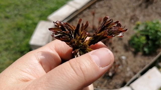 Молодые побеги пионов с бутонами портятся. Апрель 2024.