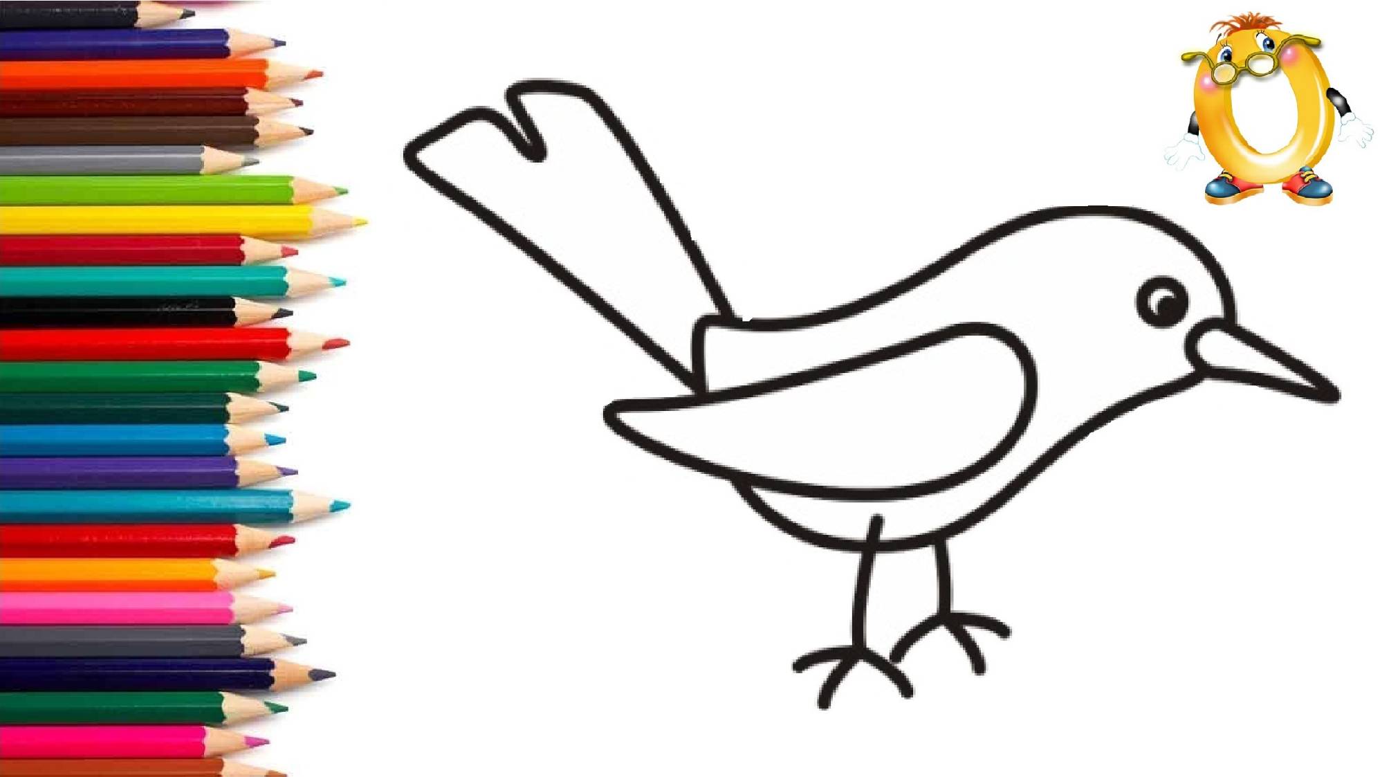 Мультик - раскраска для детей ПТИЧКА. Учимся как рисовать ПТИЦУ // ОБУЧАШКА ТВ