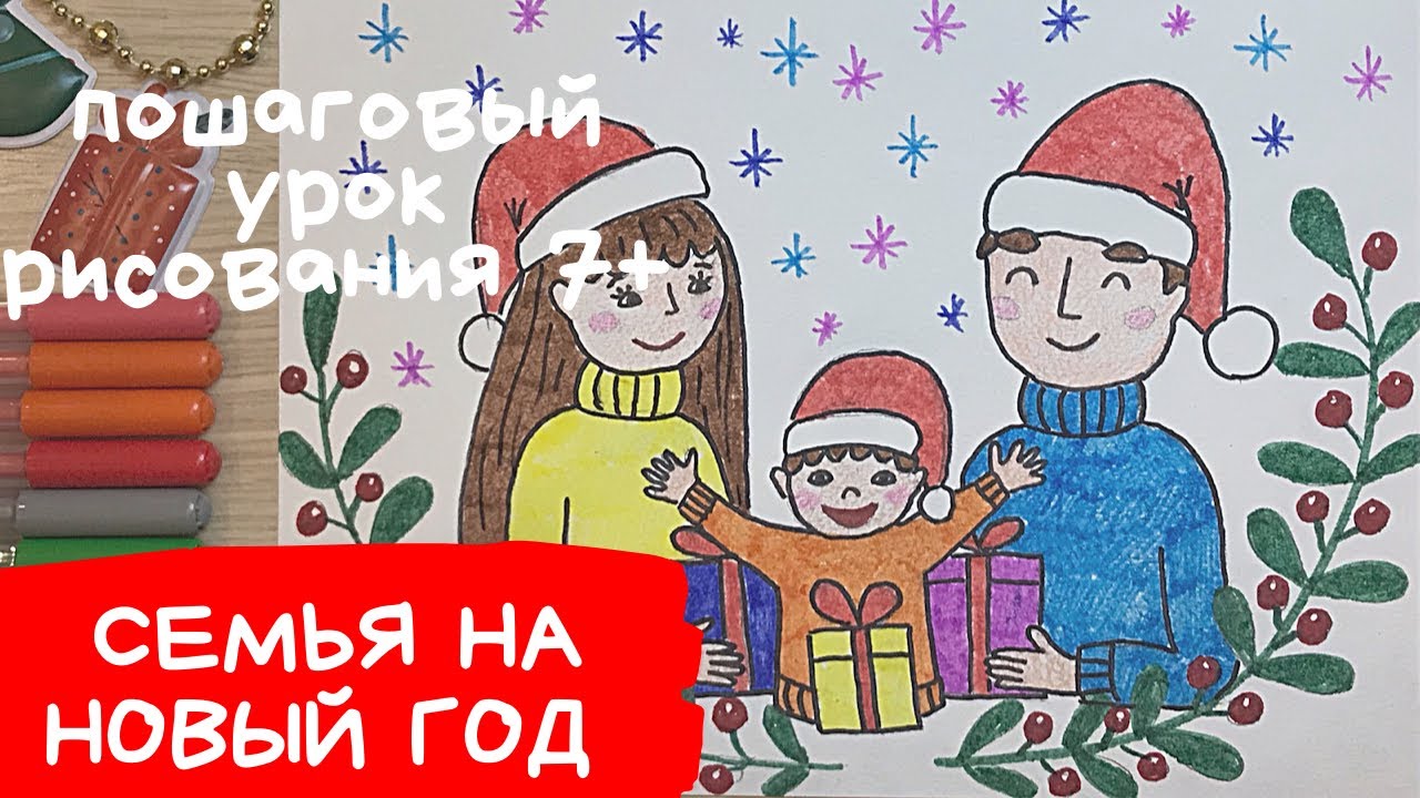 Рисунок моя семья. Рисунок новогодняя семья. Моя семья и новогодняя сказка рисунок. Мама папа я.