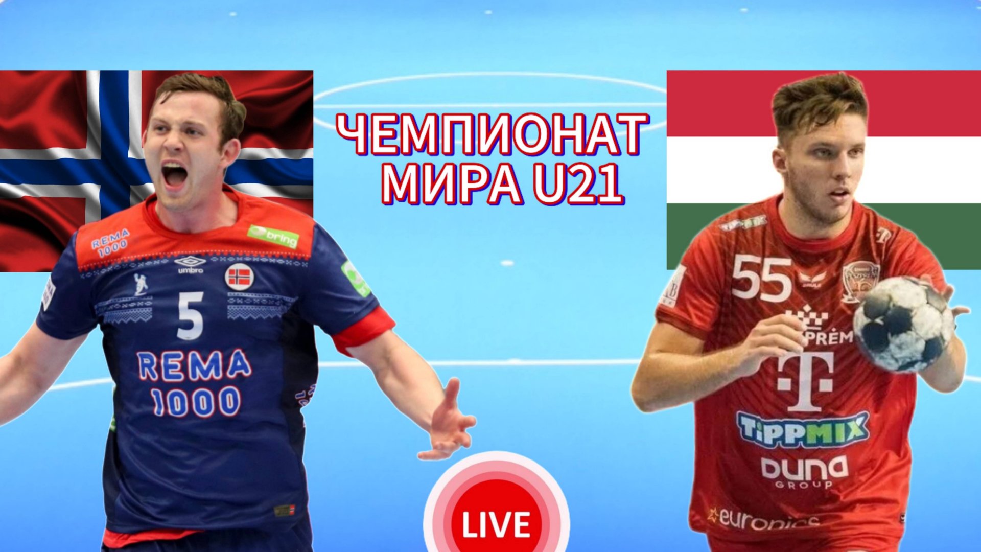 ГАНДБОЛ МОЛОДЁЖНЫЙ ЧЕМПИОНАТ МИРА U21. НОРВЕГИЯ - ВЕНГРИЯ. ПРЯМАЯ ТРАНСЛЯЦИЯ