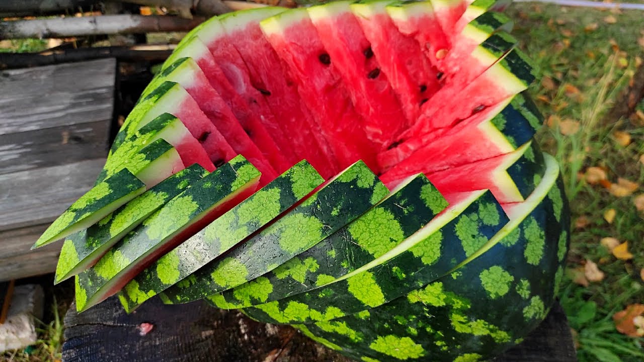 НЕОБЫЧНАЯ НАРЕЗКА АРБУЗА. НАУЧИЛ ВСЮ ДЕРЕВНЮ #арбуз