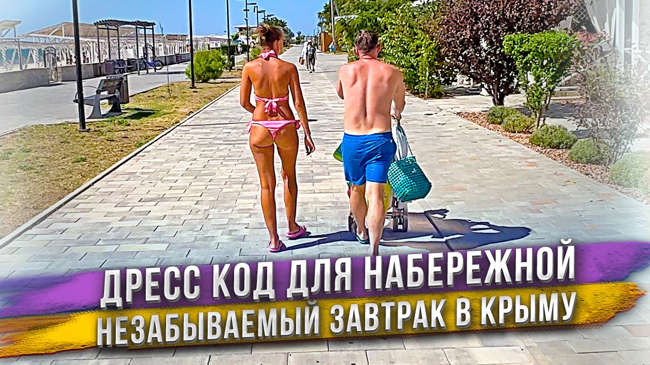 Еще один день нашего отпуска в Крыму в городе Евпатория. Утро начинается с вкусного завтрака в ресторанчике, который расположен на первом этаже апартаментов в которых мы снимаем квартиру. Выйдя с утра на улицу мы сразу обратили внимание на то, что люди на набережной одеваются по разному. Даже встретили пару в купальнике и плавках, которая выделялась из всех остальных прогуливающихся по набережной. Как вы считаете - это допустимый дресс код для городской набережной?