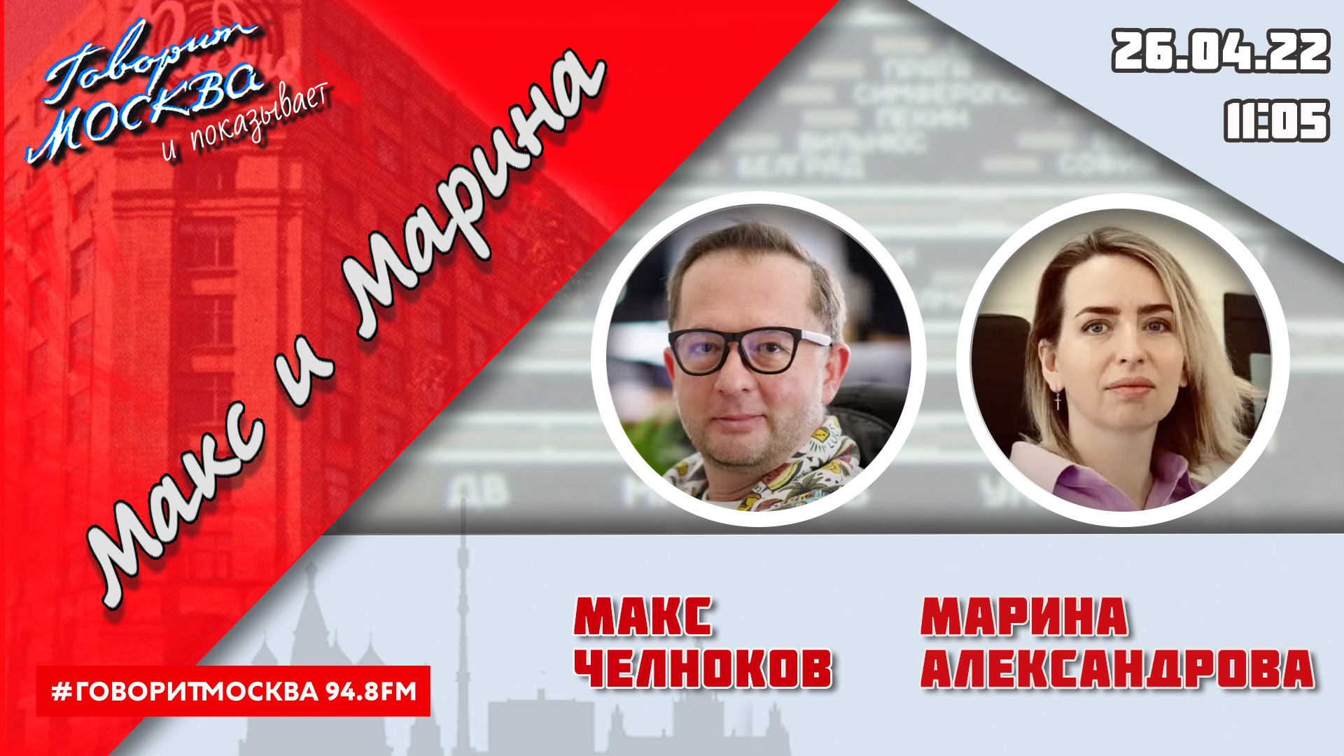 Программа Макса Челнокова и Марины Александровой. Программа предназначена для лиц старше шестнадцати лет. Подписывайтесь на нас ! https://rutube.ru/channel/23876512/ https://www.youtube.com/channel/UCh8s... https://zen.yandex.ru/govoritmsk https://vk.com/govoritmoskvafm https://t.me/radiogovoritmsk https://twitter.com/govoritmsk #ГоворитМосква #МАКСИМАРИНА