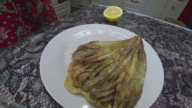Рецепт: - 4 баклажана - панировочные сухари - растительное масло для жарки Для кляра: - 4 яйца - 1 ст. л. майонеза - 1 ч. л. горчицы - 1/2 ч. л. перца молотого - 1 бульонный кубик - 2 ст. л. муки