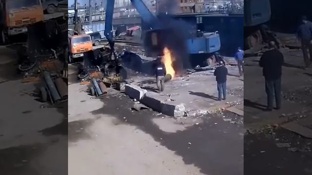 Это просто гениально! До чего только не додумаются. Ну трудно открутить вентиль,залить баллон водой и потом резать, ну неужели так сложно блин.
