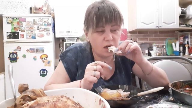 Мукбанг Курица в рукаве с картошкой