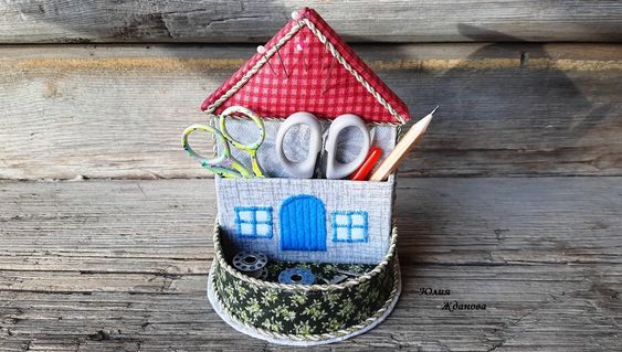 Такой органайзер в виде Домика однозначно понравится любой мастерице, тут и иголочки на месте, и ножнички можно положить, и линейку , да много еще разной мелочи войдет!