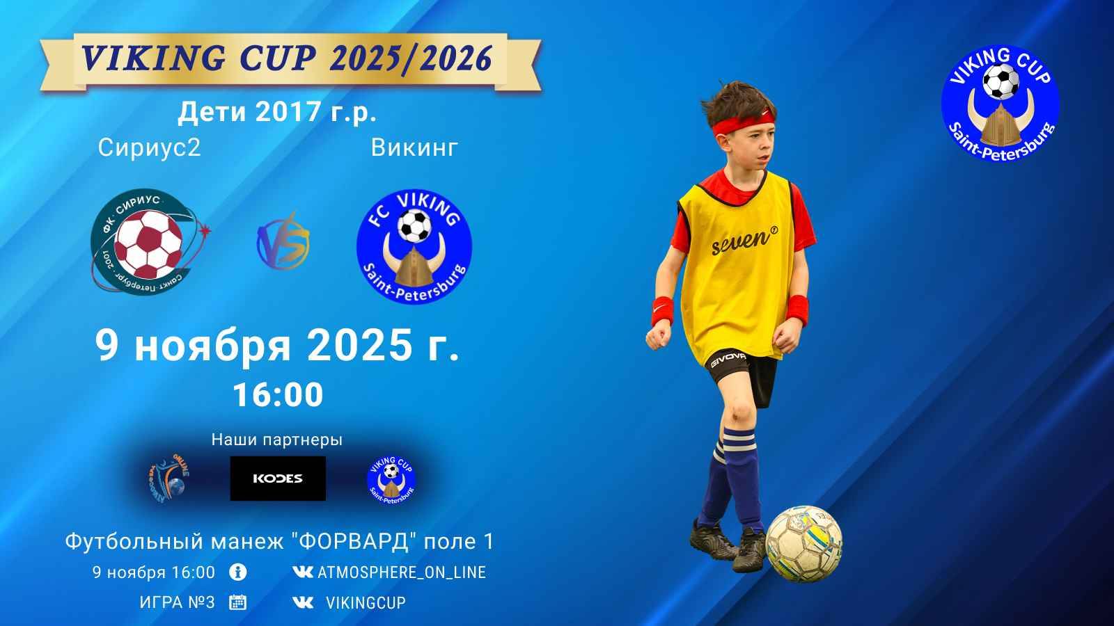 VIKING CUP среди команд 2017 г.р. (U8), Поле 1 9 ноября 2025 САНКТ-ПЕТЕРБУРГ, ФЦ "Форвард" ФК "Сириус2" - ФК "Викинг"/VIKING CUP, Игра №3, 09-11-2025 16:00