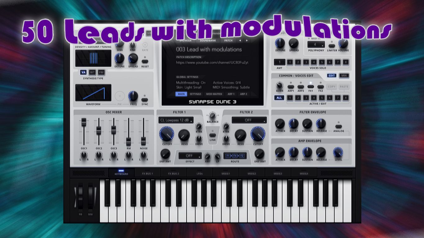 Сделал новый пресет пак на синтезатор DUNE 3 плюс FLP. В этом видео вы можете послушать как они звучат. Ниже вы можете скачать пресеты и FLP. Для использования пресетов скопируйте папку FLP Free 50 Leads with modulations DUNE 3 by Soulbringer в папку Soundbanks от синтезатора DUNE 3. В самом синтезаторе нажмите на вкладку BROUSER по центру синтезатора, далее слева вверху в меню выберите Reload Soundbanks. Далее пресет пак будет доступен через кнопку Soundbanks на основном дисплее синтезатора. Архив FLP Free 50 Leads with modulations DUNE 3 by Soulbringer распаковывать не нужно, это FLP для проверки звучания синтов, то есть сохранение проекта в FL Studio. Его можно открыть через меню программы FL Studio как обычное сохранение. Из внешних плагинов в FLP помимо DUNE 3, использован синтезатор бочки BazzISM2. Скачать бесплатно 50 Leads with modulations DUNE 3 by Soulbringer & FLP: https://cloud.mail.ru/public/9Tz4/3kj7SRw6g Теги: #пресеты, #сохранение, #настройки, #ФЛП, #Проект, #Синтез, #Музыка, #Электронная, #Танцевальная, #Написание, #Сочинение, #Синтезатор, #Качественный, #Синты, #Мелодии, #Лид, #Пситранс, #Ритмы, #Модуляции, #Суперпила, #Гоатранс, #Синтезатор #Дюна 3, #VSTi, #Presets, #Save, #Settings, #FLP, #Project, #Synthesis, #Music, #Electronic, #Dance, #Writing, #Composing, #Synthesizer, #HighQuality, #Synths, #Melodies, #Lead, #Psytrance, #Rhythms, #Modulations, #Supersaw, #Goatrance, #SynthesizerDune3