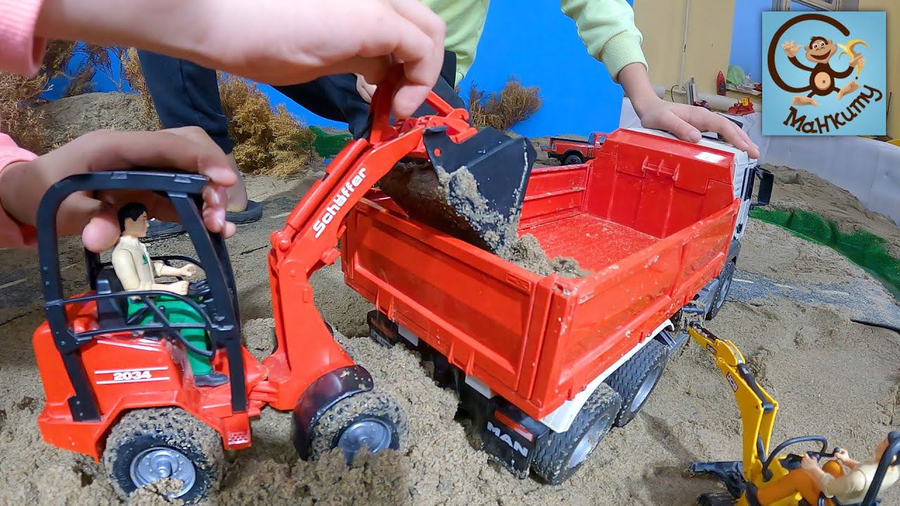 Экскаватор, погрузчик и самосвал строят мост - Машинки Игрушки. Манкиту