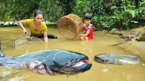 Во время рыбалки в сезон паводков неожиданно поймала большую рыбину.