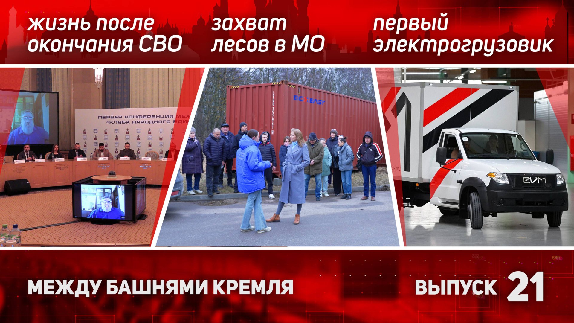 - В центре столице разгорелся масштабный пожар в гостиничном комплексе. Огонь охватил пентхаус, стоимость которого оценивается в несколько миллиардов рублей. Мы расскажем о масштабах трагедии и возможных причинах возгорания. - Прошла первая конференция Клуба Народного Единства. Участники обсудили роль СМИ в восстановлении мира и укреплении связей между народами. Подробности и принятые решения – в репортаже с места событий. - Жители подмосковного поселка Володарского бьют тревогу из-за незаконного захвата лесных территорий. Кто и на каком основании складирует контейнеры посреди леса, и что ждет природу в будущем? Разбираемся в ситуации. - Москва делает ставку на экологичный транспорт! На улицах города появились первые электрогрузовики. Мы посетили производство и узнали о перспективах развития электромобильного транспорта в России.