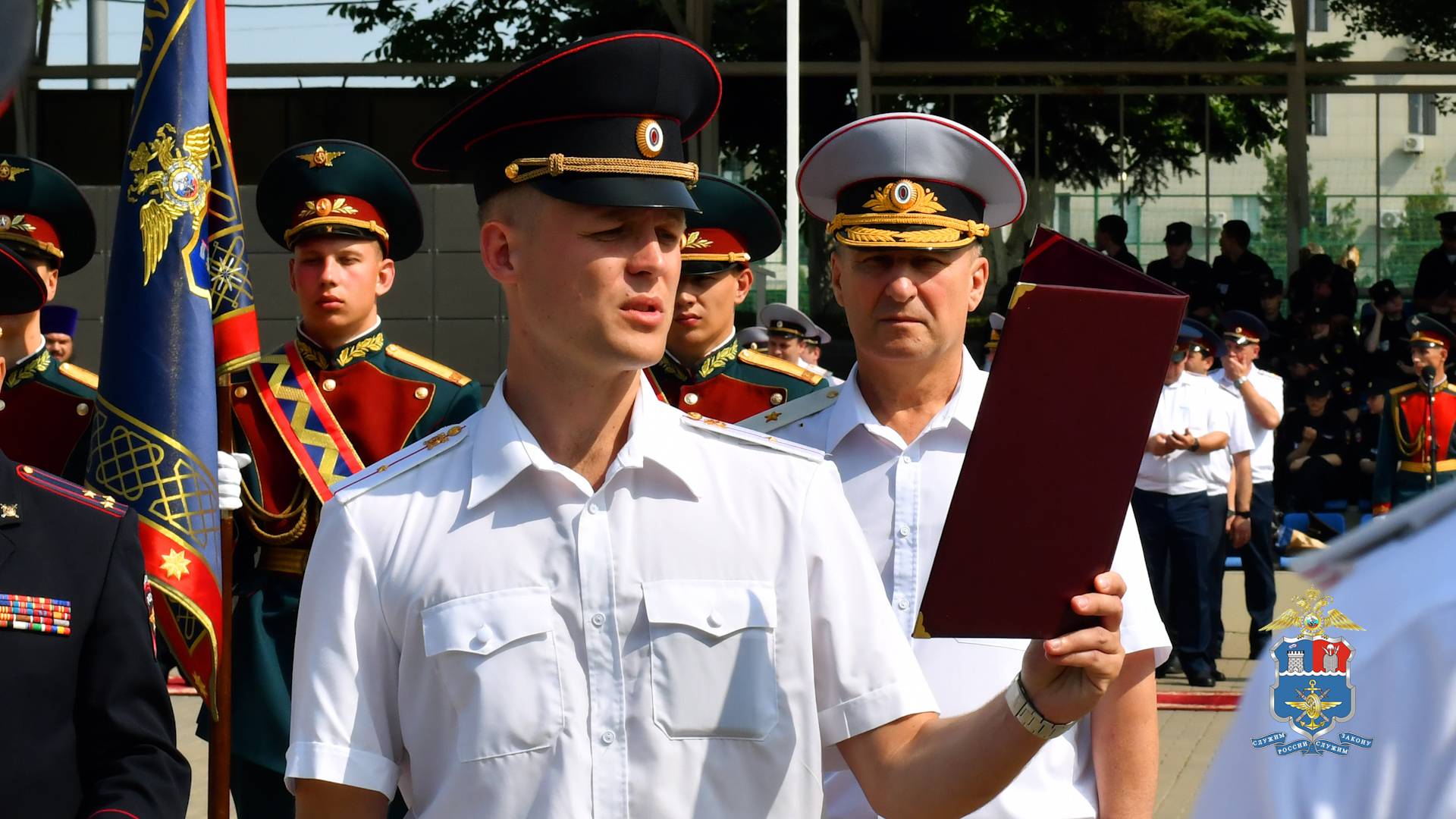 Сегодня, в преддверии Дня России, в стенах Ростовского юридического института МВД России состоялась торжественная церемония совместного принятия присяги сотрудниками правоохранительных органов Ростовской области. Это значимое событие подчеркнуло преданность защитников правопорядка Родине и закону. Мероприятие началось под звуки Государственного гимна Российской Федерации. Среди почетных гостей присутствовали начальник управления на транспорте МВД России по Северо-Кавказскому федеральному округу генерал-майор полиции Виктор Шметков, представители федеральных и региональных органов государственной власти, руководители силовых ведомств, а также личный состав Управления, ветераны и родственники правоохранителей. В ходе торжества за безупречную службу и выдающиеся достижения ряд сотрудников транспортной полиции был удостоен ведомственных наград. Среди награждённых – двое сотрудников, которым за отличия в службе вручены Благодарность Губернатора Ростовской области и Благодарственное письмо Председателя Законодательного Собрания Ростовской области. С приветственным словом к собравшимся обратился генерал-майор полиции Виктор Шметков. Он поздравил личный состав с важным этапом в жизни каждого офицера – принятием присяги. В этот день пятеро транспортных полицейских присягнули на верность Отечеству и его народу, поклявшись уважать и защищать права и свободы человека и гражданина, свято соблюдать Конституцию Российской Федерации, достойно исполнять свои служебные обязанности по обеспечению безопасности, законности и правопорядка. Новоиспеченные сотрудники прошли торжественным маршем, демонстрируя строевую выправку и дисциплину. Завершилось мероприятие памятным фотографированием, запечатлевшим этот знаменательный день в истории правоохранительных органов. 📲 Транспортная полиция СКФО (t.me/utposkfo) #ТранспортнаяПолицияСеверногоКавказа #МВД#МВДРоссии#Полиция#ПолицияРоссии#Россия#Police#RussianPolice#Russia#транспортнаяполиция