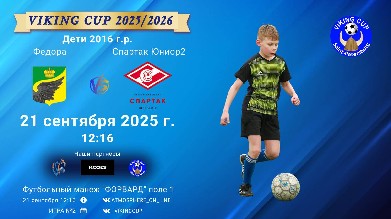 VIKING CUP среди команд 2016 г.р. (U9), Поле 1 21 сентября 2025 САНКТ-ПЕТЕРБУРГ, ФЦ "Форвард" ФК "СпартакЮниор2" - ФК "Федора"/VIKING CUP, Игра №2, 21-09-2025 12:16