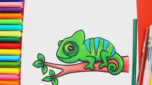 Как легко рисовать ХАМЕЛЕОНА | Как легко нарисовать милого хамелеона