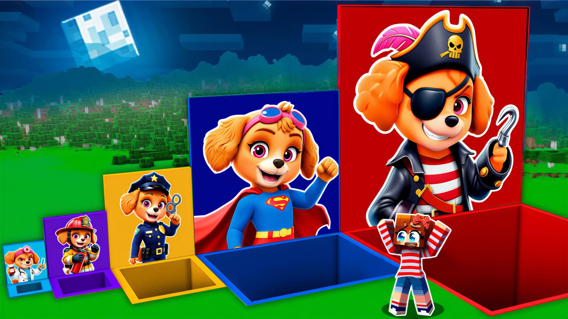 Ребята, сегодня у нас супер-испытание в Майнкрафт! Перед нами 5 загадочных ям, и в каждой из них спряталась Скай в необычном костюме! 🐾✨ Кто нас ждет внизу? Добрая Скай-доктор 🩺, отважный полицейский 👮 или... ОПАСНЫЙ ПИРАТ с крюком? 🏴☠️ Мне нужно выбрать правильную яму, чтобы выжить и получить супер-приз! Если я ошибусь, то попаду в ловушку к Хамдингеру! В этом видео: ✅ Какая Скай самая сильная? ✅ Что спрятано на дне золотой ямы? ✅ Секретный костюм Супер-Скай! 🦸♀️ 👇 ПИШИ В КОММЕНТАРИЯХ, в какую яму прыгнул бы ты: в синюю, красную или желтую? Посмотрим, кто самый смелый! Нэнси и Щенячий Патруль в мире Minecraft: добрые приключения, постройки и ролевые истории для всей семьи. Подписывайся, ставь лайк и предлагай идеи для следующей серии!