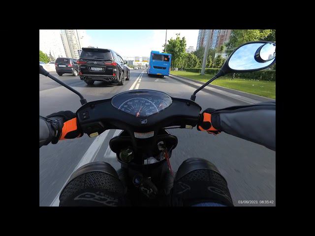 Покатушки на Honda Dio 68 по городу и его гигантским пробкам. 50 кубов вполне хватает для города! В то время, как литровые спортбайки крадутся в междурядье, рыча и бибикая на зазевавшихся водителей, скутер едет по выделенной полосе свои постоянные 50 км\ч! Скутер - идеальное транспортное средство для теплого сезона в большом городе.