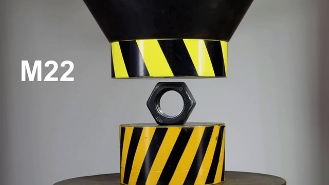 We will test a huge nut for strength with a 500-ton hydraulic press, and a very strong small nut