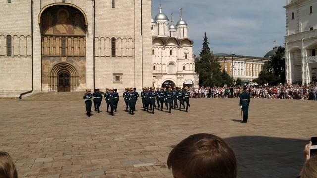 Развод конного и пешего караулов президентского полка в Кремле на Соборной площади с оркестром. Достопримечательности Москвы. Что посмотреть. Суббота, 12.00