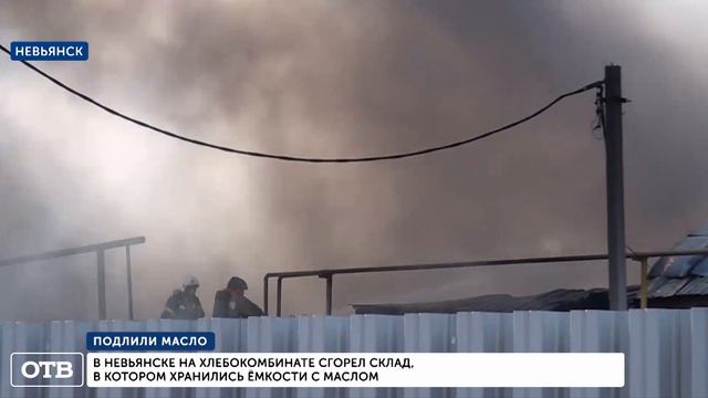 Серьёзный пожар произошёл в Невьянске: на хлебокомбинате загорелось масло. На площади в 500 кв. м в цехе загорелись кубовые контейнеры с горючим веществом. Чёрным дымом заволокло всю улицу Попова в Невьянске. Информация о ЧП поступила в 11:05, к месту происшествия незамедлительно отправилась группа из 26 спасателей на восьми спецмашинах. На месте был развёрнут штаб, угрозы распространения пожара на соседние строения не было, но процесс тушения был осложнён. Информации о пострадавших также не поступало. Огонь удалось локализовать только спустя 40 минут. Огонь не повлиял на работу хлебокомбината. Сергей Бобошин, директор ООО «Невьянск-Хлебопродукт»: «Цех новый не пострадал, продовольственная безопасность страны не пострадала, мы будем трудиться дальше, восстановим».