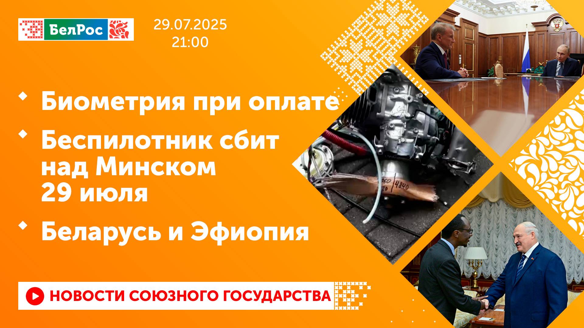 Закадровый текст озвучивает *ИИ Антон* Новости 29.07.2025 на 21:00 - Герман Греф заявил о мировом лидерстве России в оплате по биометрии. - Следственный комитет Беларуси расследует уголовное дело по факту падения дрона в Минске. - Беларусь расширяет сотрудничество с Эфиопией. - Экипаж ТОС-2 "Тосочка" поразил опорные пункты и укрытия ВСУ. - Операторы дронов группировки войск "Запад" уничтожили место скопления сил ВСУ. - Расчёты РСЗО "Торнадо-С" поразили объекты ВСУ на Харьковском направлении. - В Минске стартовал семинар для руководителей дипломатических представительств Беларуси. Смотрите главные новости Союзного государства на телеканале БелРос. Ссылки на наши соц. сети Сайт: http://belros.tv/ Telegram: https://t.me/belrostv Одноклассники: https://ok.ru/group/55657426976918 ВКонтакте: https://vk.com/belrostv TikTok: https://www.tiktok.com/@belros_tv?_t=... RuTube: https://rutube.ru/channel/23501830/ Яндекс. Дзен: https://zen.yandex.ru/belrostvv Наши подкасты на Яндекс. Музыке: https://music.yandex.ru/album/25615251 #главныеновости #новостисегодня #СоюзноеГосударство