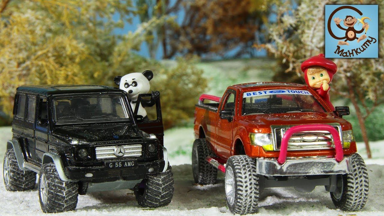 Мультик про машинки. Маша и Медведь на горных лыжах. МанкиМульт