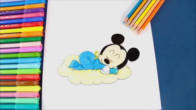 Как нарисовать и раскрасить малыша Микки Мауса (малыши также называют его «Малышем Мики Маусом» :D), спящего на удобной подушке.