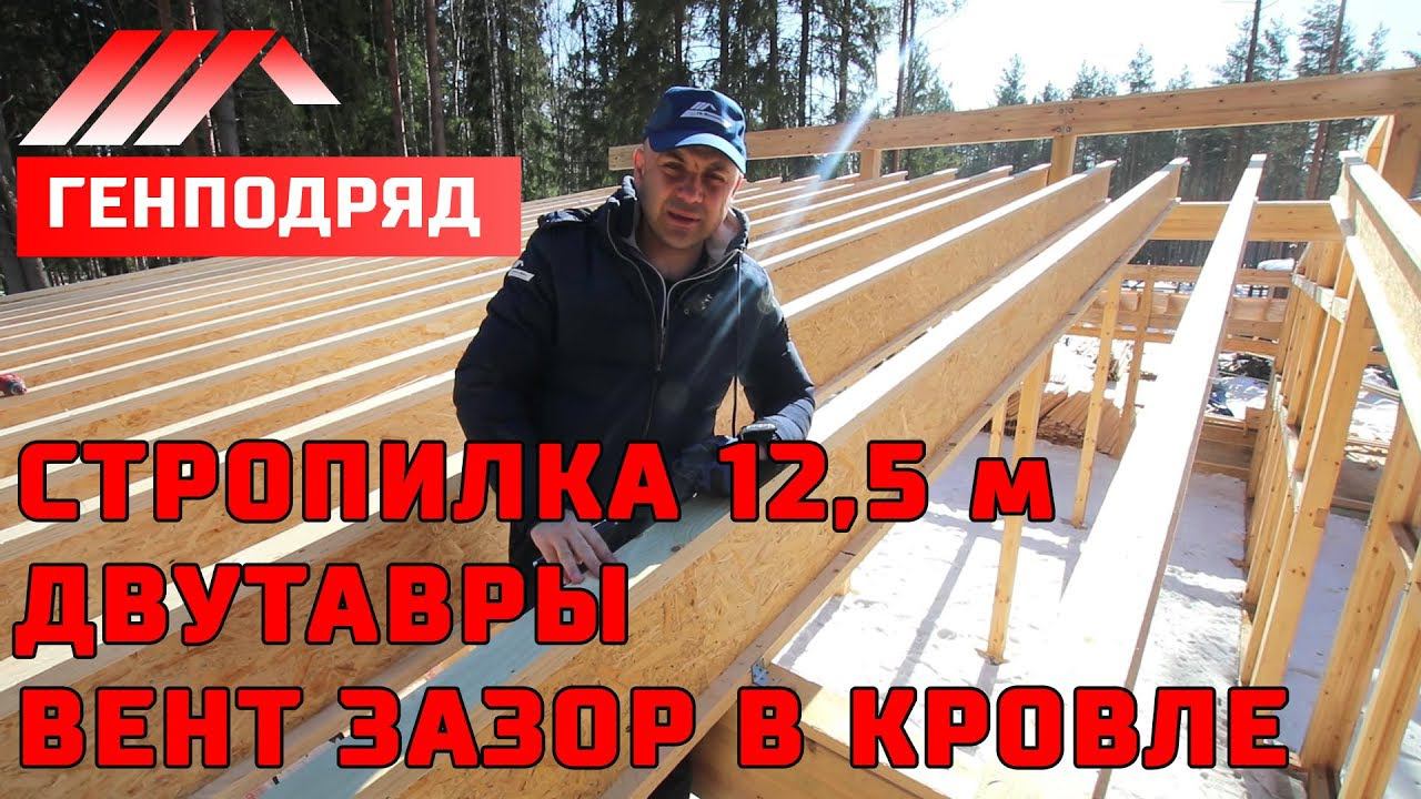 ФАХВЕРК. 3.10. Стропильная система длиной 12,5 метров. ДВУТАВРЫ. Вент зазор кровли. ГЕНПОДРЯД.