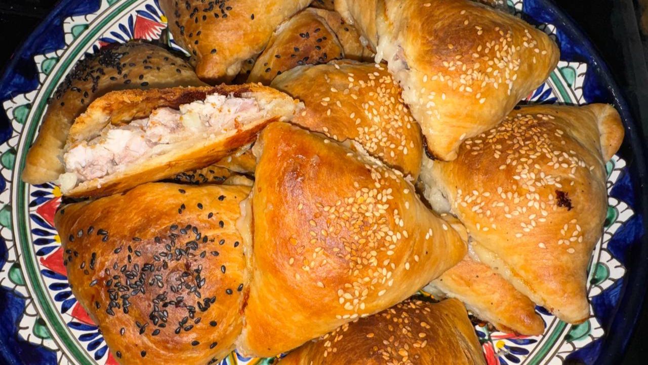 Самса с курицей и самса со свининой, сегодня будет очень вкусно.