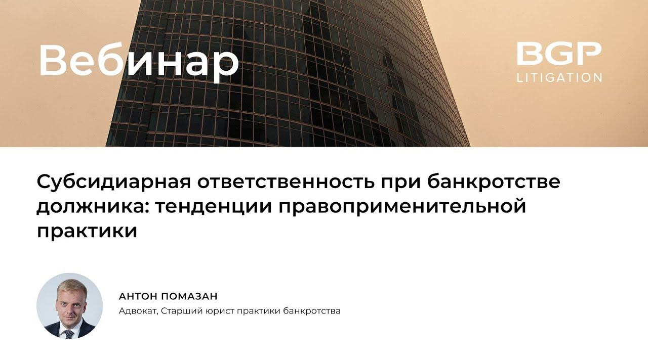Вебинар «Субсидиарная ответственность при банкротстве должника»