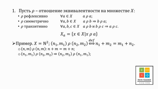 Видеоролик-задача 56 - Отношение эквивалентности и разбиение множеств. Равносильность подходов