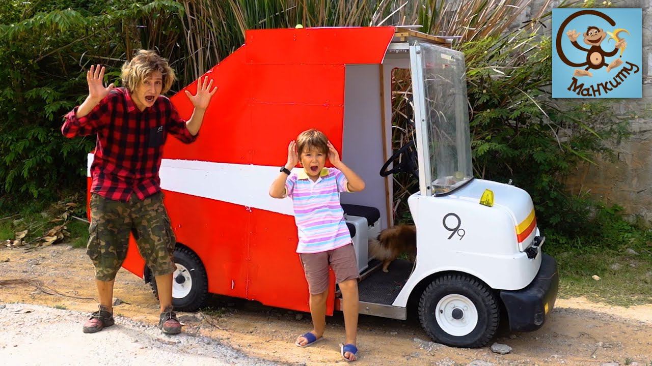 Манкиту Милан и Папа играют в спасателей, застряли на красной машине.
