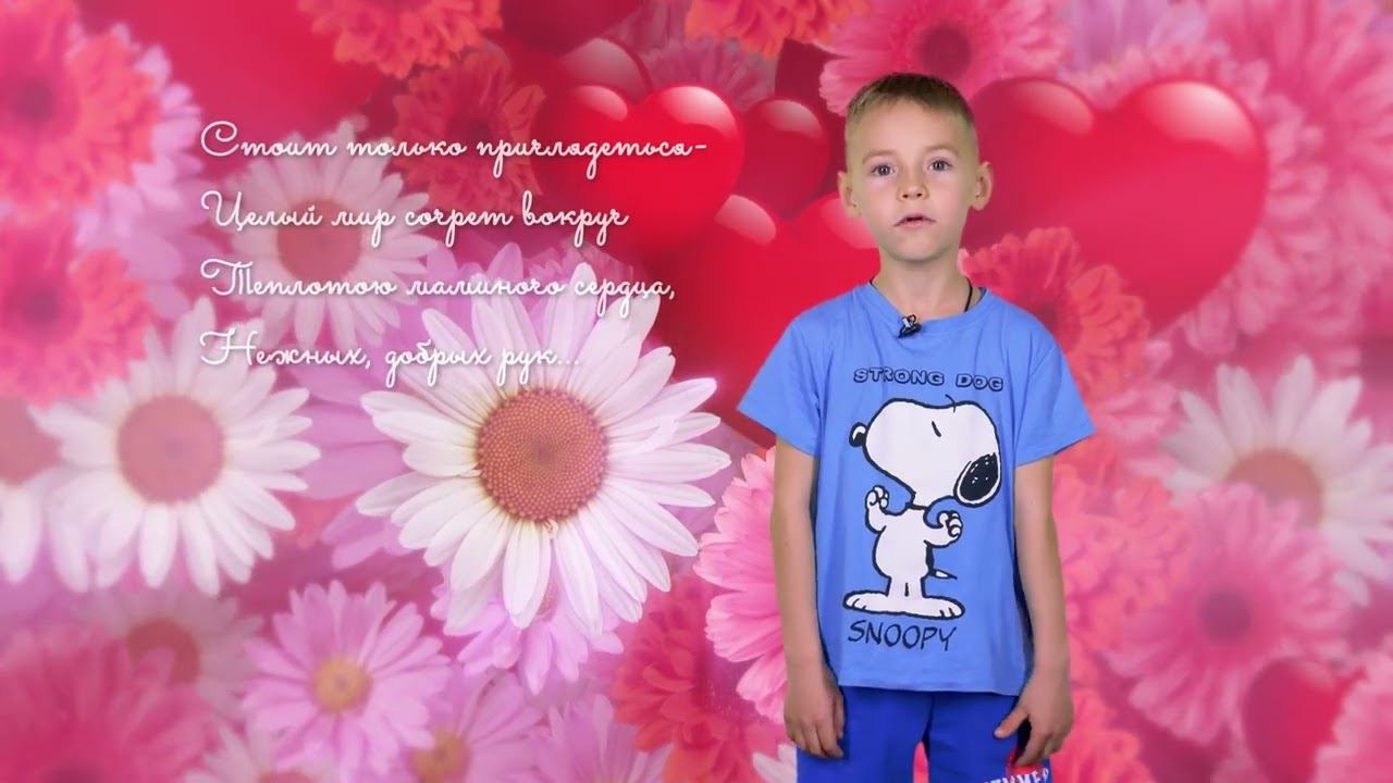 Юный биробиджанец стал участником специального проекта медиахолдинга РИА Биробиджан и партнеров "Стихи любимой маме". Серия выпусков посвящена приближающемуся Дню матери. Трогательные и искренние слова адресованы самому близкому и родному человеку. А в исполнении ребят звучат как известные, так и ранее не публиковавшиеся произведения . Партнеры проекта: языковая школа «Speak English», магазин электроинструментов и оборудования «100 дел», сеть супермаркетов "Санвэй", салон "Аскона"
