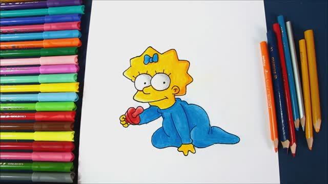 Как нарисовать и раскрасить малышку Мэгги Симпсон, сестра Барта и Лизы Симпсон и дочь Гомера и Мардж Симпсон, из мультсериала «Симпсоны» | Рисунок Мэгги Симпсон, вымышленного персонажа мультсериала «Симпсоны».