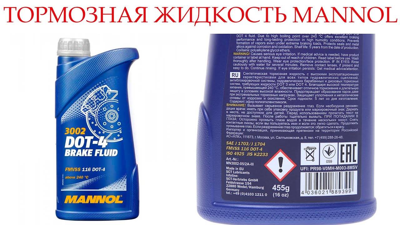 Лучшая тормозная жидкость Mannol DOT- 4(Brake Fluid), температура кипения 240 градусов. Допуски: FMVSS 116, SAEJ 1703/1704, ISO 4925.