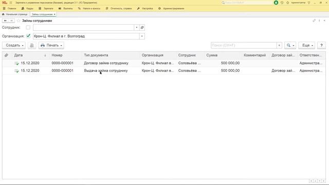 Как в 1С Зарплата и управление персоналом 3.1 выдать займ сотруднику