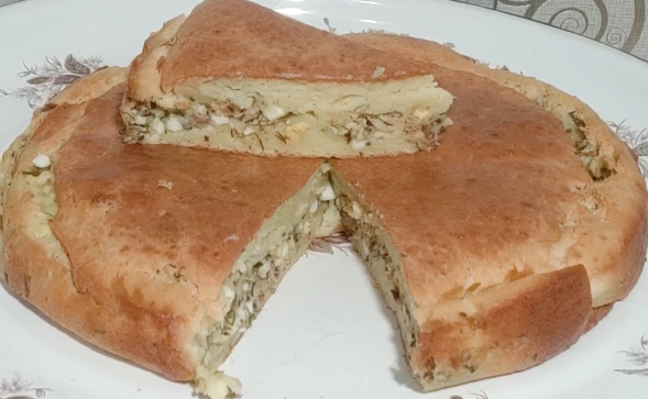 Ингредиенты: кефир– 250 мл.; тунец (консервированный) – 1 банка; сметана - 3 ст. л.; куриные яйца – 6 шт.; мука– 300 гр.; сливочное масло – 50 гр.; разрыхлитель – 1 ч.л.; зелень – по вкусу; соль- по вкусу Вкладывает свою любовь в блюдо, благодаря этому даже самая простая пища оказывается особенно вкусной, и, не побоюсь сказать, наделяется целительной силой.