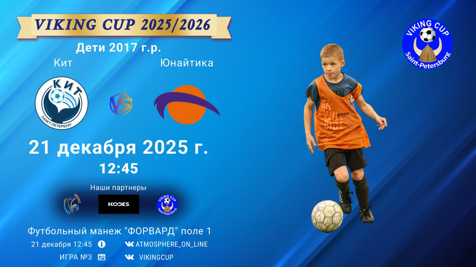 VIKING CUP среди команд 2017 г.р. (U8), Поле 1 21 декабря 2025 САНКТ-ПЕТЕРБУРГ, ФЦ "Форвард" ФК "Кит" - ФК "Юнайтика"/VIKING CUP, Игра №3, 21-12-2025 12:45